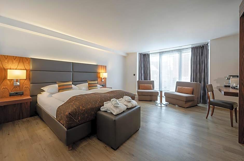 This modern air-conditioned junior suite comes with a flat-screen TV with free SKY channels, a mini-bar, a private bathroom and a desk. Further amenities include bathrobes, slippers, a Nespresso coffee machine (including a selection of tabs) and current magazines.